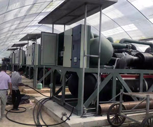 不同的植物溫濕度村求,大棚需要供暖及降溫保持恒溫;恒星實地考察后利用當(dāng)?shù)厮Y源豐富的特點,專門定制“水源熱泵機(jī)組”系統(tǒng),實現(xiàn)供冷、供暖、除濕三個功能,取代鍋爐,節(jié)省投資和運行費用。