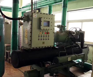 該項目的化工低溫制冷系統(tǒng)有防爆要求,綜合考慮后選用防爆型螺桿式低溫冷水機(jī)組,防爆等級為d I I B T 4 級, 防護(hù)等級為I P 5 5 ,高壓啟動柜獨立設(shè)置,操作安全性提高。